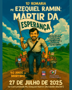 A Diocese de Ji-Paraná, o Instituto Pe. Ezequiel Ramin, o instituto religioso Missionários Combonianos, a Comissão Pastoral da Terra (CPT), o Conselho Indigenista Missionário (Cimi), a Pastoral da Juventude e demais organismos ligados à Igreja Católica convidam todos e todas a participarem da 10ª Romaria Pe. Ezequiel Ramin, que acontecerá no dia 27 de julho de 2025, na Comunidade Pe. Ezequiel Ramin, no município de Rondolândia (MT), na divisa com Rondônia. A Romaria deste ano marca os 40 anos do martírio de Pe. Ezequiel, assassinado em 1985 por sua dedicação profética à causa dos pobres, camponeses e povos indígenas.
