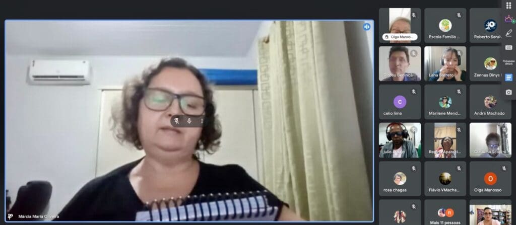 A professora Marcia iniciou a roda de partilha com a oração da Campanha, em solidariedade ao Papa Francisco, que se encontra hospitalizado para tratar de quadro de pneumonia. Em seguida, aprofundou o significado da Ecologia Integral, conceito central da encíclica “Laudato Si”, do Papa Francisco, que enfatiza a interconexão entre as dimensões ambientais, sociais, culturais, econômicas e espirituais.