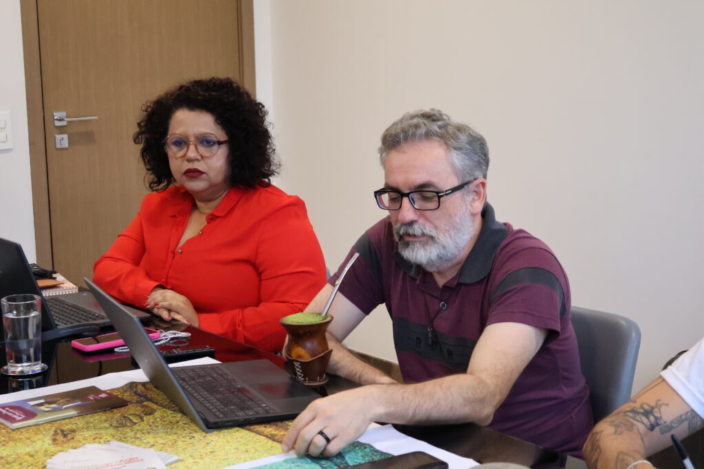 Reunidos na sede da Conferência dos Bispos, em Brasília (DF), Alessandra Miranda e padre Edinho Thomassim avaliam o projeto desenvolvido de forma colegiada pelas pastorais, organismos e redes que fazem parte da Comissão para a Ação Sociotransformadora da CNBB com apoio da Misereor. Esse monitoramento é acompanhado pelo assessor metodológico do Centro de Assessoria e Apoio a Iniciativas Sociais (CAIS), Domênico Corcione. Também auxiliam o encontro a assessora de comunicação da Cepast, Jucelene Rocha, e o colaborador Felipe Marques.