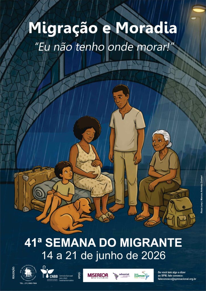 Entre os dias 14 e 21 de junho de 2026, comunidades de todo o país realizarão a 41ª Semana do Migrante. Promovida pelo Serviço Pastoral dos Migrantes (SPM), organismo vinculado à Conferência Nacional dos Bispos do Brasil (CNBB), a edição deste ano traz como tema “Migração e Moradia” e o lema impactante “Eu não tenho onde morar!”.