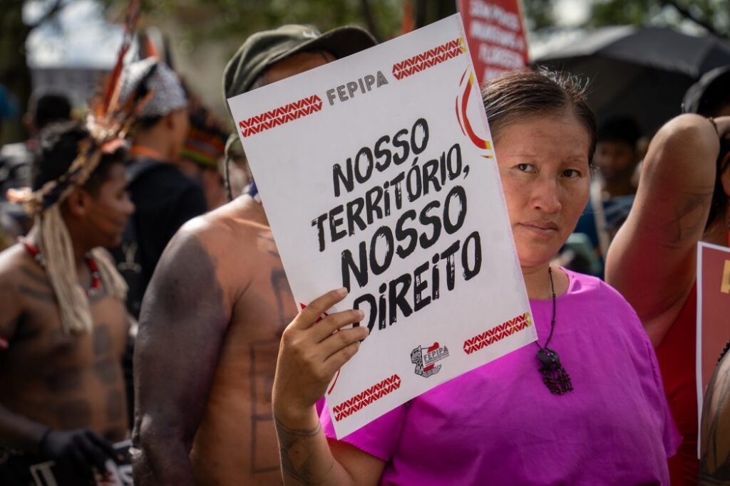 A carta endereçada ao Judiciário aponta que a promulgação da Lei 14.701 em 2023, em reação à decisão de repercussão geral do STF que declarou o marco temporal inconstitucional naquele mesmo ano, “manteve um cenário de insegurança jurídica, ampliando conflitos e buscando reintroduzir, por via legislativa, obstáculos já rejeitados constitucionalmente”.