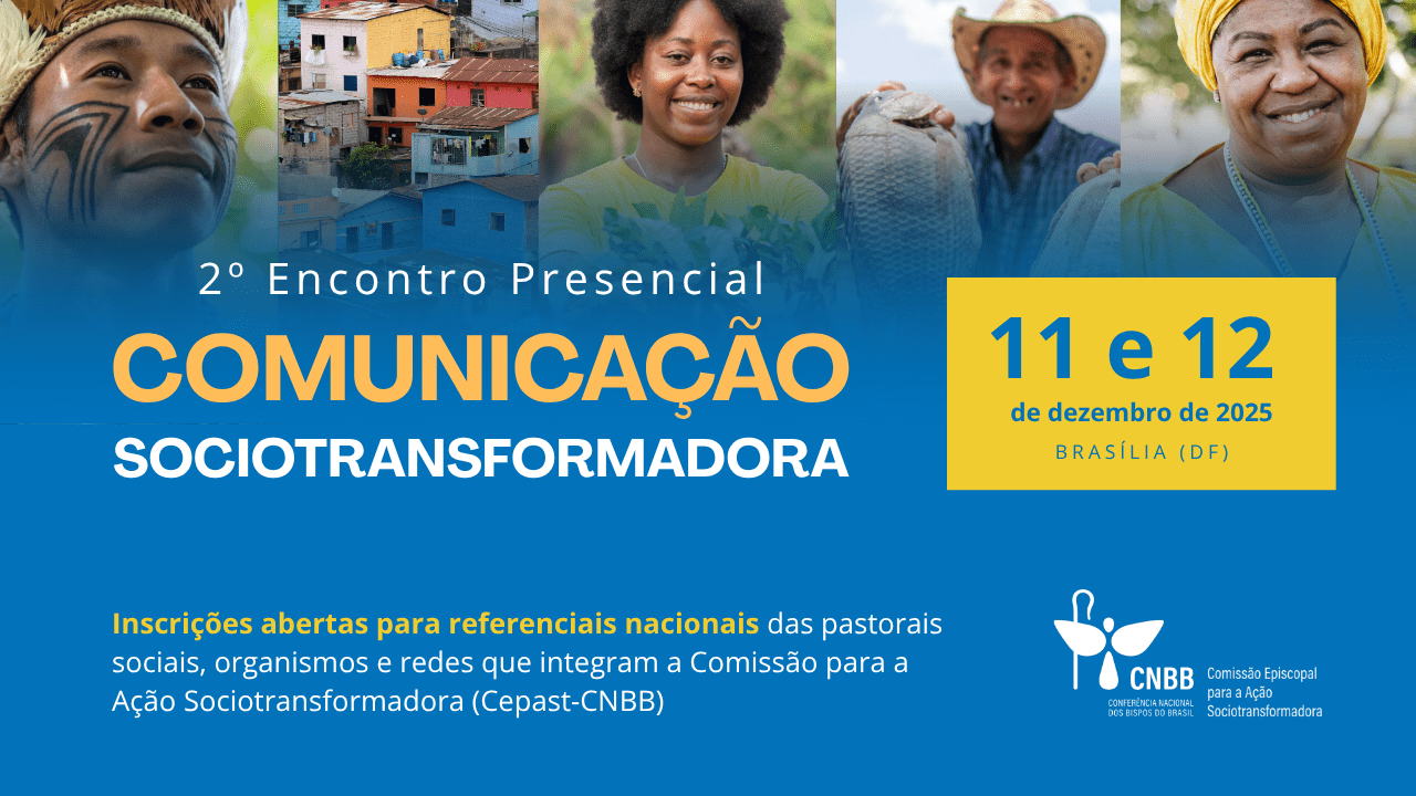 A Comissão Episcopal para a Ação Sociotransformadora (Cepast-CNBB) prepara o 2º Encontro Presencial Comunicação Sociotransformadora. Esta importante agenda vai acontecer nos dias 11 e 12 de dezembro de 2025, no Centro Estigmatino de Pastoral, em Brasília (DF).