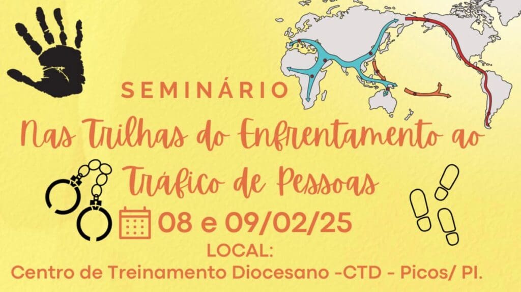A Diocese de Picos realizará, nos dias 08 e 09 de fevereiro de 2025, no Centro de Treinamento Diocesano (CTD), em Picos (PI), o Seminário “Nas Trilhas do Enfrentamento ao Tráfico de Pessoas”. O evento tem como objetivo principal fortalecer as ações de combate a esse tipo de crime e aprofundar as discussões sobre o tema, que é de extrema importância e complexidade. O seminário contará com a participação de representantes de paróquias, áreas pastorais, organismos diocesanos, do Sistema de Garantia de Direitos da sociedade civil e suas respectivas autoridades.