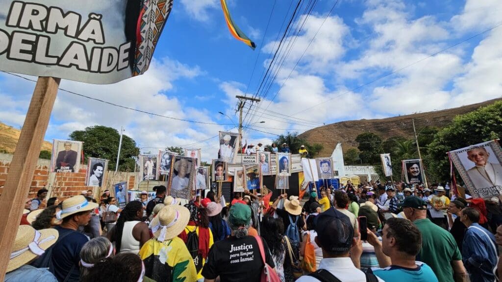 Romeiros reforçam pedido de reparação aos atingidos e atingidas pelo crime socioambiental de Mariana (MG) e de descontaminação das águas da bacia do Rio Doce