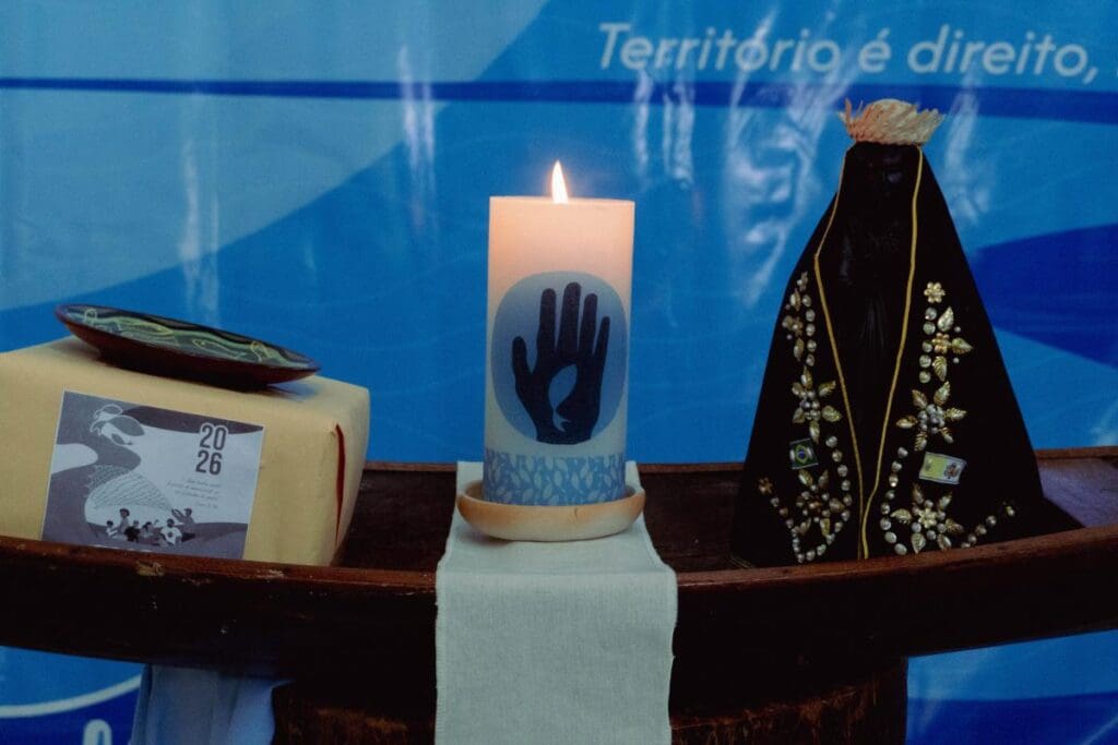 O espaço estava cuidadosamente preparado para o momento da eleição do secretariado nacional do CPP para o triênio 2026–2029. O ambiente, marcado por símbolos e silêncio atento, expressava a seriedade e a espiritualidade do passo que seria dado. Os votos foram apresentados e depositados em um barco transformado em altar, sinal eloquente da identidade da pastoral, onde repousavam a imagem de Nossa Senhora Aparecida, padroeira do Brasil, e uma vela acesa, luz que orienta, fogo que aquece e que simboliza a força viva da Divina Ruah a conduzir os caminhos.
