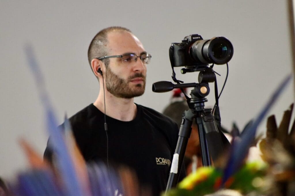 Tiago Miotto, comunicador do Cimi. Peregrinos e peregrinas da Comunicação da Esperança praticando o “correio da Boa Notícia” para fortalecer a luta e construção do Bem Viver. Foto: Cláudia Pereira
